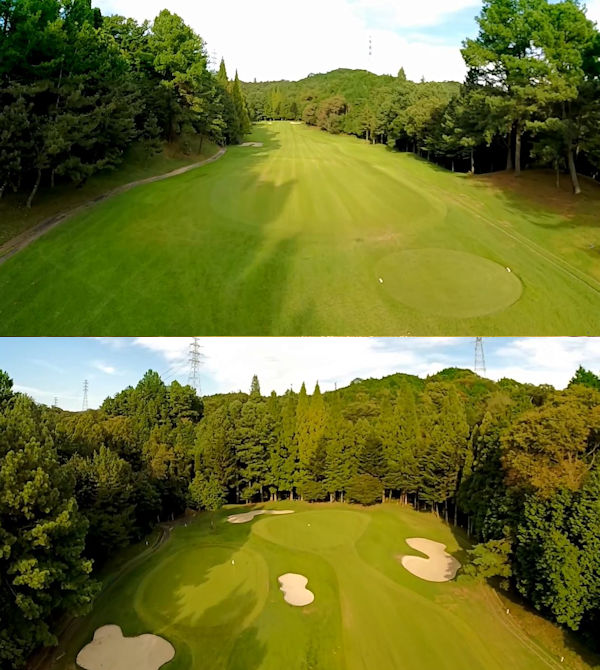 セカンド地点からは右にOB杭が迫り出しておりショットにプレッシャーを与える。