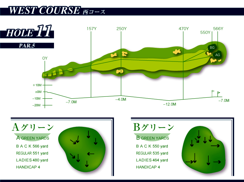 ストレートでやや距離のあるぱー5。ティーショットは左右のバンカーに注意。セカンド地点より打ち下ろしになりまたグリーン手前100ヤード地点から打ち上げになる。